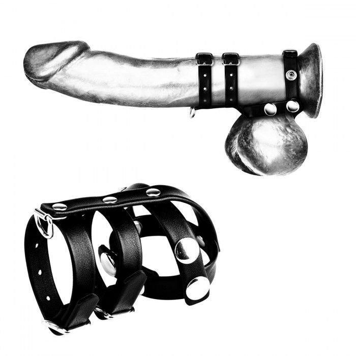 Это комбинированный ремень предназначен для максимального утягивания половых органов у мужчин. Пенис опухнет, яички будут сдавлены. Особенности петли в нижней части, идеально подходит для подвешивания веса и других предметов или для поводка.