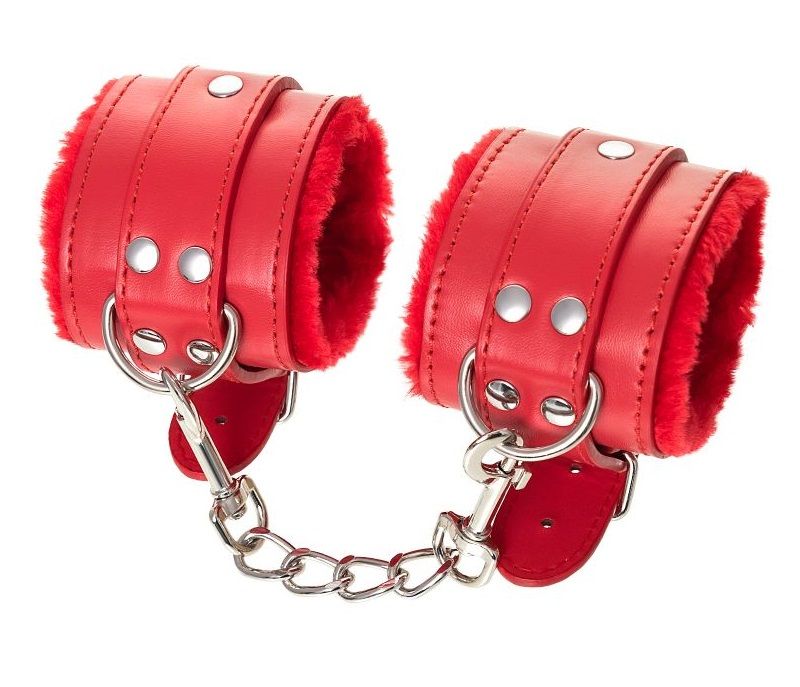Наручники яркого красного цвета с металлической отделкой говорят вовсе не об агрессии. Эти произведения искусства говорят о страсти, которую можно проявить, но только с разрешения Доминанта. Подклад из искусственного меха делает ношение этих наручников более комфортным, но расслабиться в них не получится – цепочка на карабинах сильно ограничивает свободу действий. Длина наручников позволяет использовать их практически на любой размер рук. Отрегулировать размер и силу обхвата легко с помощью ремешка и металлической пряжки. Наручники – классический предмет для игры в подчинение, обязательный для начинающих и опытных поклонников БДСМ. Дополните комплект аксессуарами – ошейником, кляпом, оковами и продемонстрируйте что значит грубое обращение и полный контроль над свободой. Ширина - 5,5 см. Длина сцепки - 15,5 см.