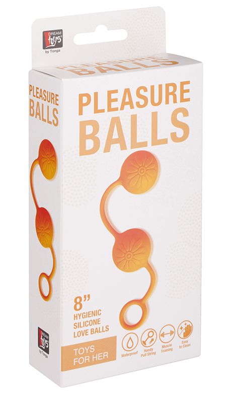 Оранжевые вагинальные шарики с цветочками на поверхности. Приятные на ощупь, из силикона.