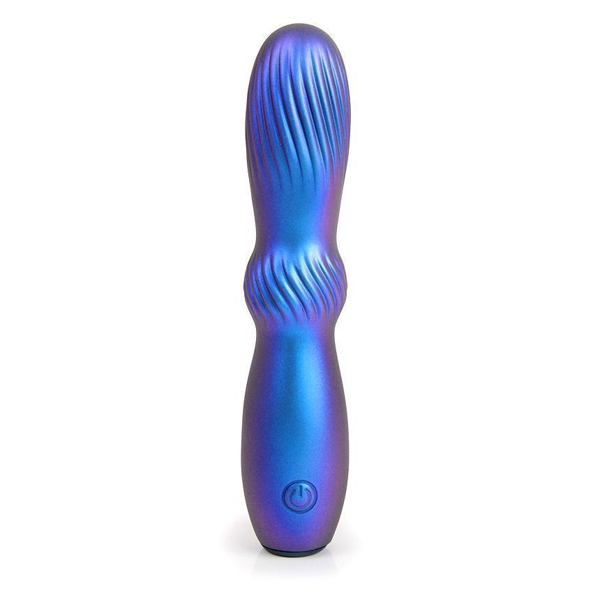 Синий фигурный вибромассажер со спиралевидным рельефом. 10 режимов вибрации. Перезаряжаемый.