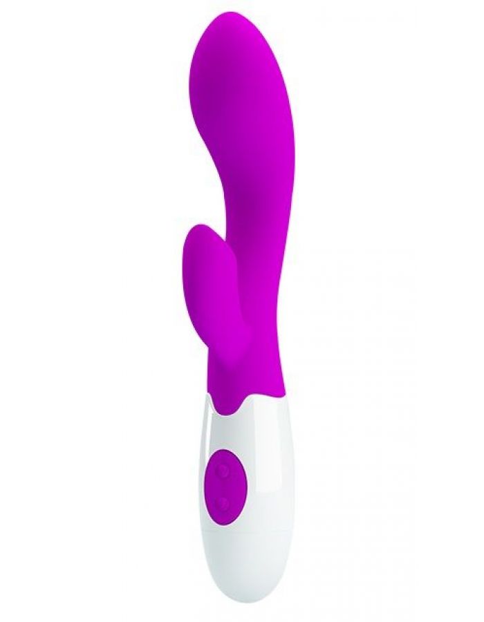 Силиконовый Brighty от Baile с изогнутой головкой для интенсивной стимуляции точки G и дальних уголков вагины. Вибрации, производимые двумя моторами, распространяются по всему стволу и клиторальному стимулятору. Удобные кнопки переключения. 30 функций вибрации на выбор. Рабочая длина - 10,2 см. Длина клиторального отростка - 4,8 см., диаметр - 1,8 см.